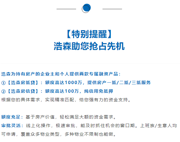 【浩森】浩森房易贷小程序上线!有房就能贷!额度高至1000万