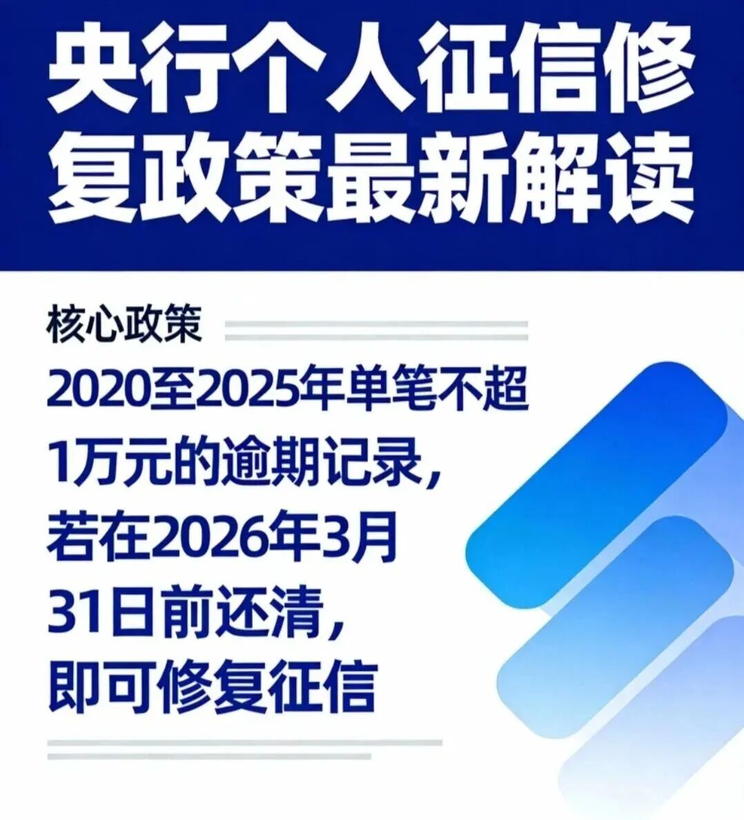 第一个关键时间点:2025年11月30日。在此之前还清欠款的,从2026年1月1日起逾期记录将不再展示。